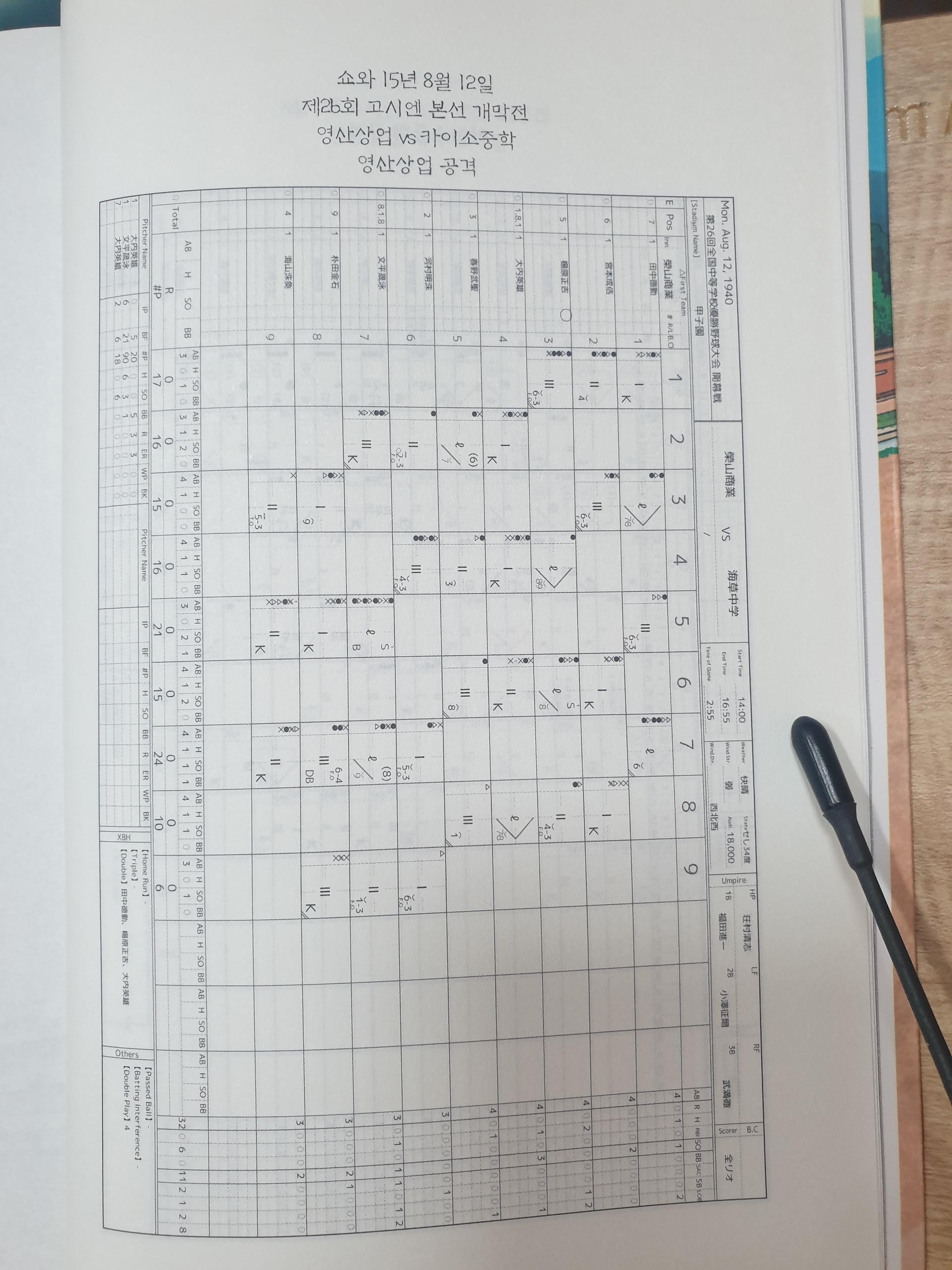 책속 영산산업 VS 카이소중학 기록지