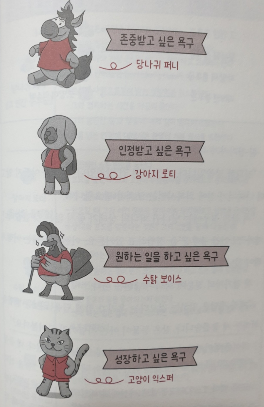 직장인들의 마음 속에 있는 욕구를 네 가지 동물들에 비유하며